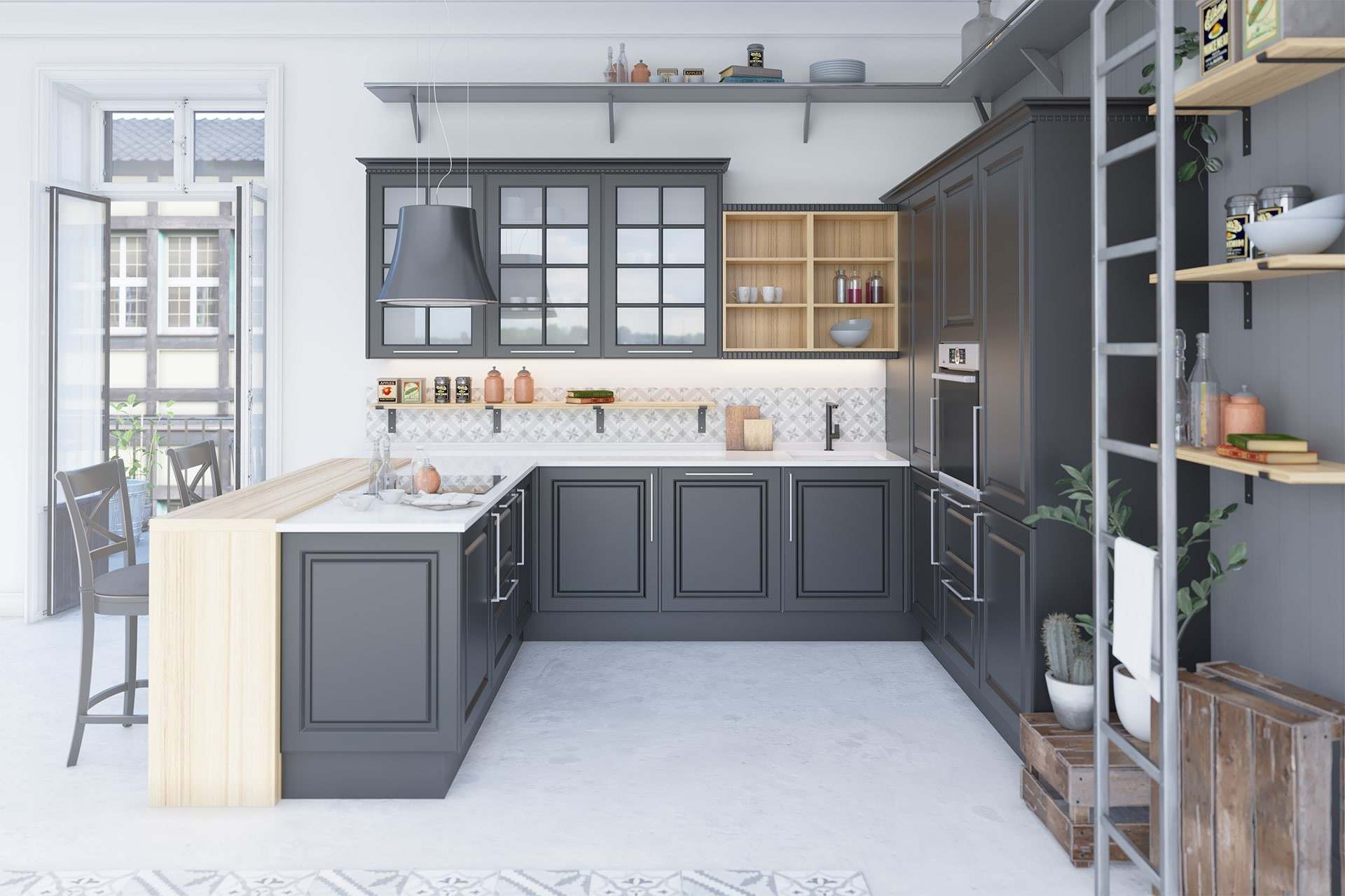 Преимущества черной кухни с деревянной столешницей