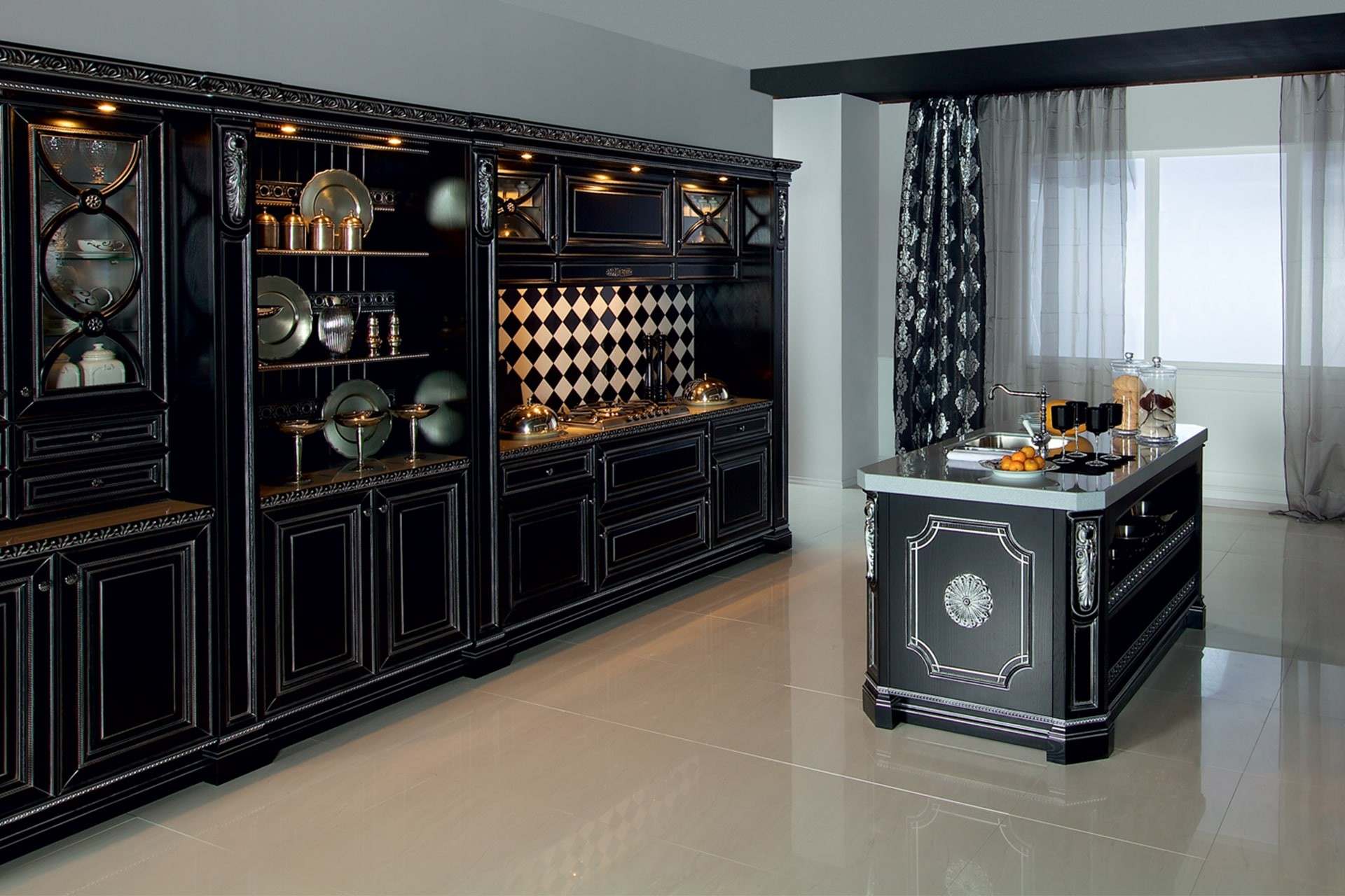 • Они способны зрительно расширять пространство. Да, все верно, черная кухня не только не сужает помещение, но даже делает его больше. Все дело в том, что черный способен придавать пространству глубину и выглядит не так массивно, как белый. Главное — правильно его применить.